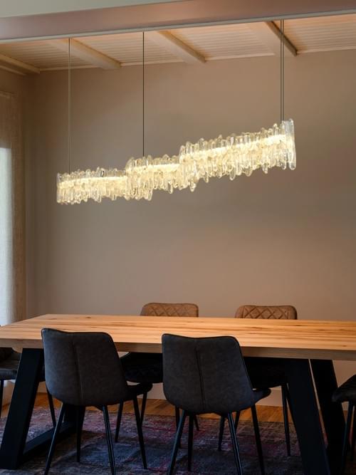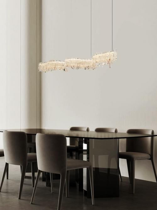 Large Modern Crystal Linear Pendant Lighti for Kitchen Island - Adjustable Rod Fixtures