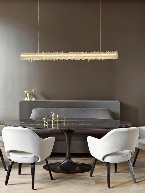 1.Featuring genuine rock crystal accents, this linear chandelier adds a glamorous, contemporary centerpiece to any room.