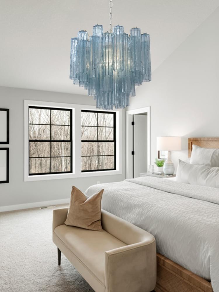 Luxury Murano Glass Chandelier Multi Layer Blue Glass Tube for Dining Room