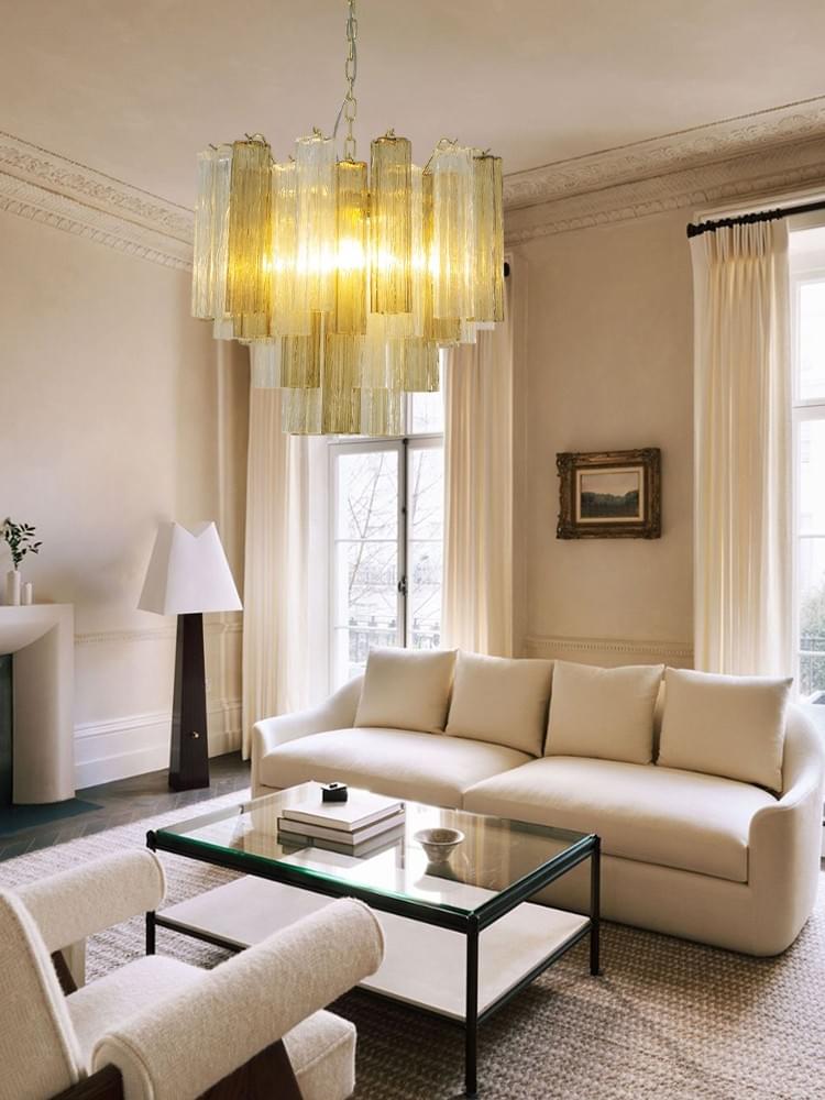 1.Vintage Italian Chandelier:Star-shaped fixture with stunning pink Murano glass tubes for a bold look.
