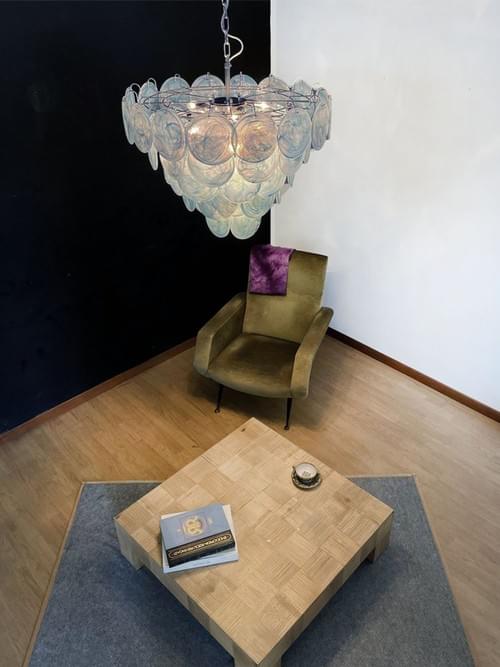 Modern Artistic Light Blue Multi-layer Glass Chandelier for Living Room