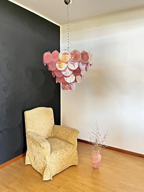 Modern Artistic Pink Multi-layer Glass Chandelier Handing Light for Living Room