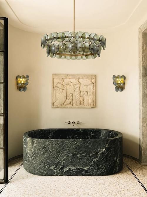 Mid-Century Italian style wall sconce with hand-pressed glass and metal frame. Provides warm, glare-free lighting. Perfect for living rooms, bedrooms, and dining areas.