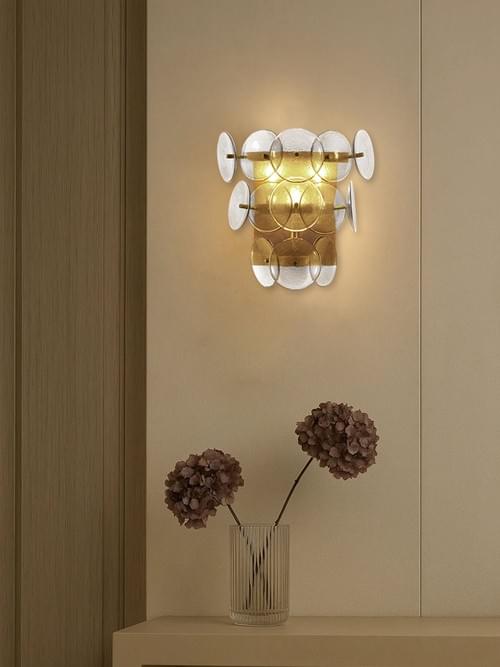 Modern Multi-layer Clear Green Brass Glass Bedside Wall Sconce for Bedroom Decor