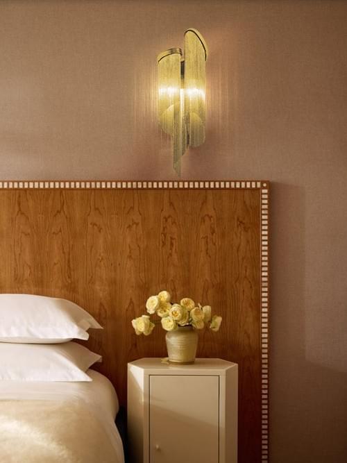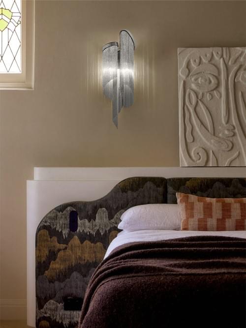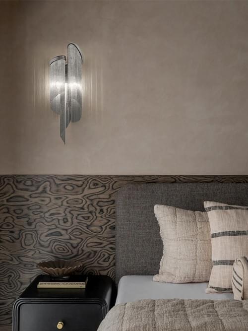 A striking waterfall of luminous chains casts ever-changing shadows across your walls.