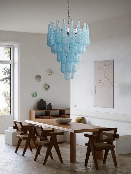 Murano Glass Drop Chandelier - A Modern Italian Petal-Design Centerpiece for Dining Rooms