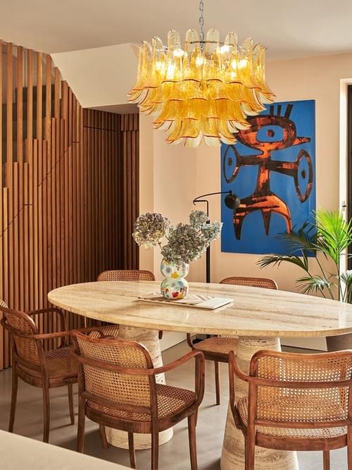 Murano Glass Petal Chandelier - Hand-Blown Cascade Glass Desiges , Luxury Lighting for Living Room