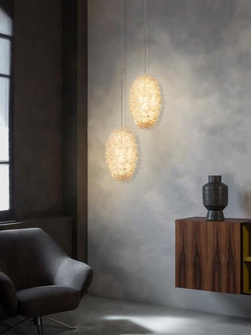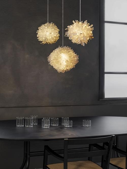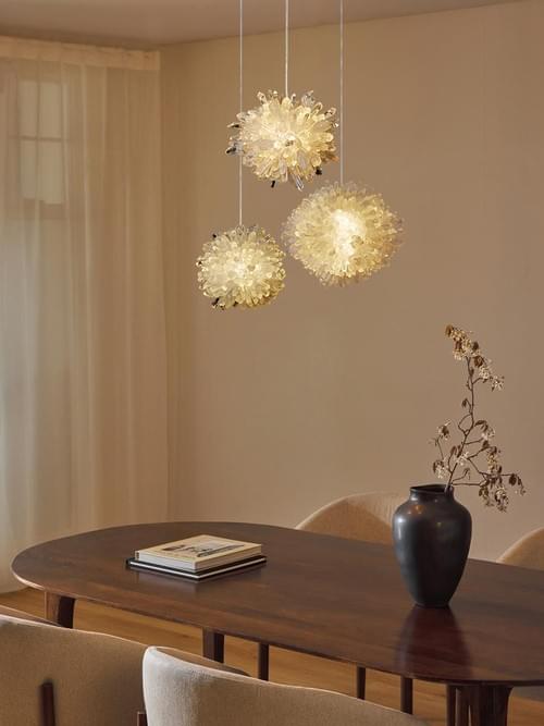 2.LED pendant lights with natural crystal clusters for living rooms and bedrooms.